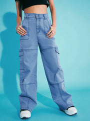 Ice Blue Acid Wash Front Seam Straight Jeans, in Denim fabric, Unlined, Full Length, Straight Fit, Button Closure, Straight Hemline and features Seam Detail at Front