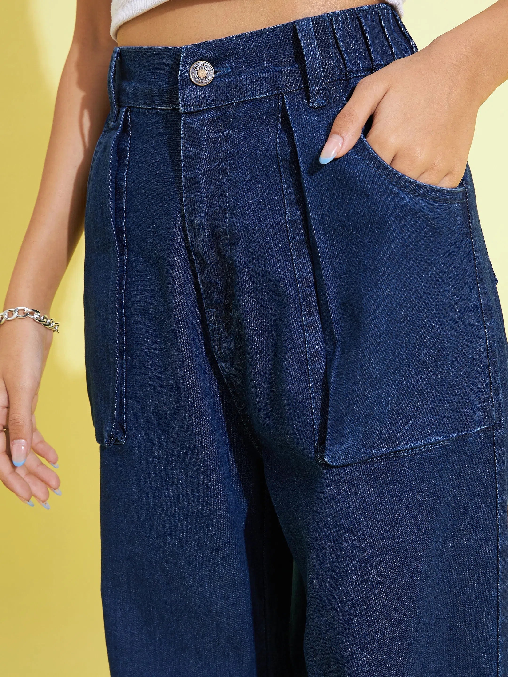 Navy ColourBlock Straight Jeans, in Denim fabric, Unlined, Full Length, Straight Fit, Button Closure, Straight Hemline and features Colour Block Detail