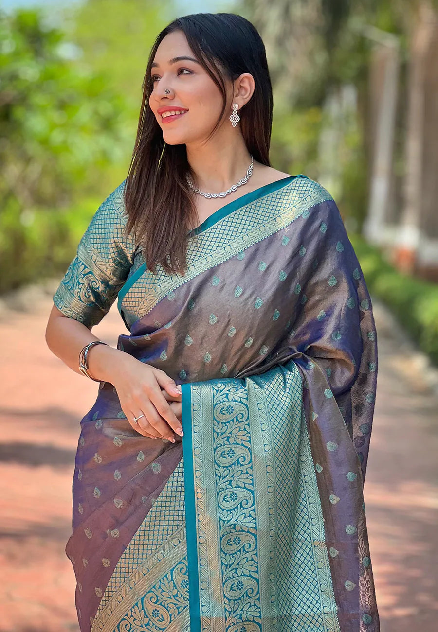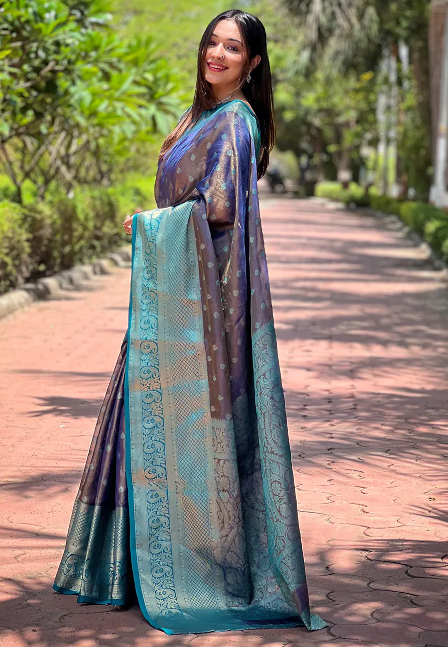 Womens Fashion Ethnic Kanjeevaram Purple Color Sarees,A saree is a timeless symbol of Indian grace, a long, flowing fabric artfully draped around the body. Paired with a stylish blouse and petticoat, it embodies elegance and cultural heritage.